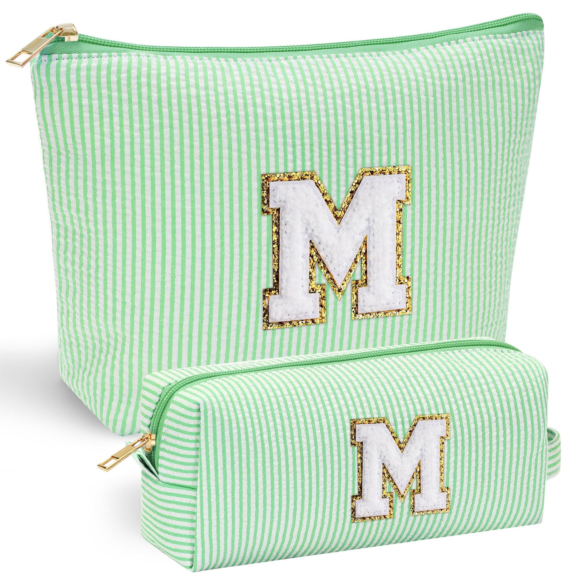 Initial Makeup Bag, Makeup Bag Travel Cosmetic Bag Cute Makeup Bag Personalized Engagement Bridesmaid Best Friend Birthday Gifts for Women Hostess Gifts for Her Friend Female Preppy Stuff M